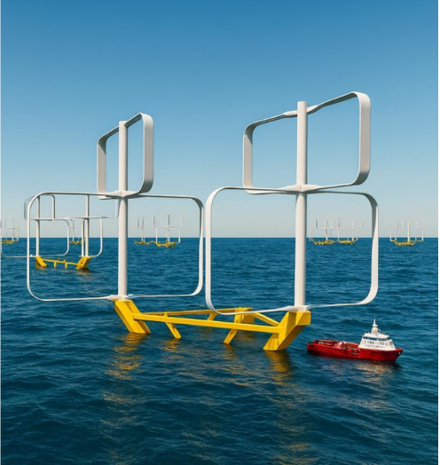 Bluetwin, société d’ingénierie française, développe un concept innovant d’éolienne flottante utilisant une technologie à double axe vertical.